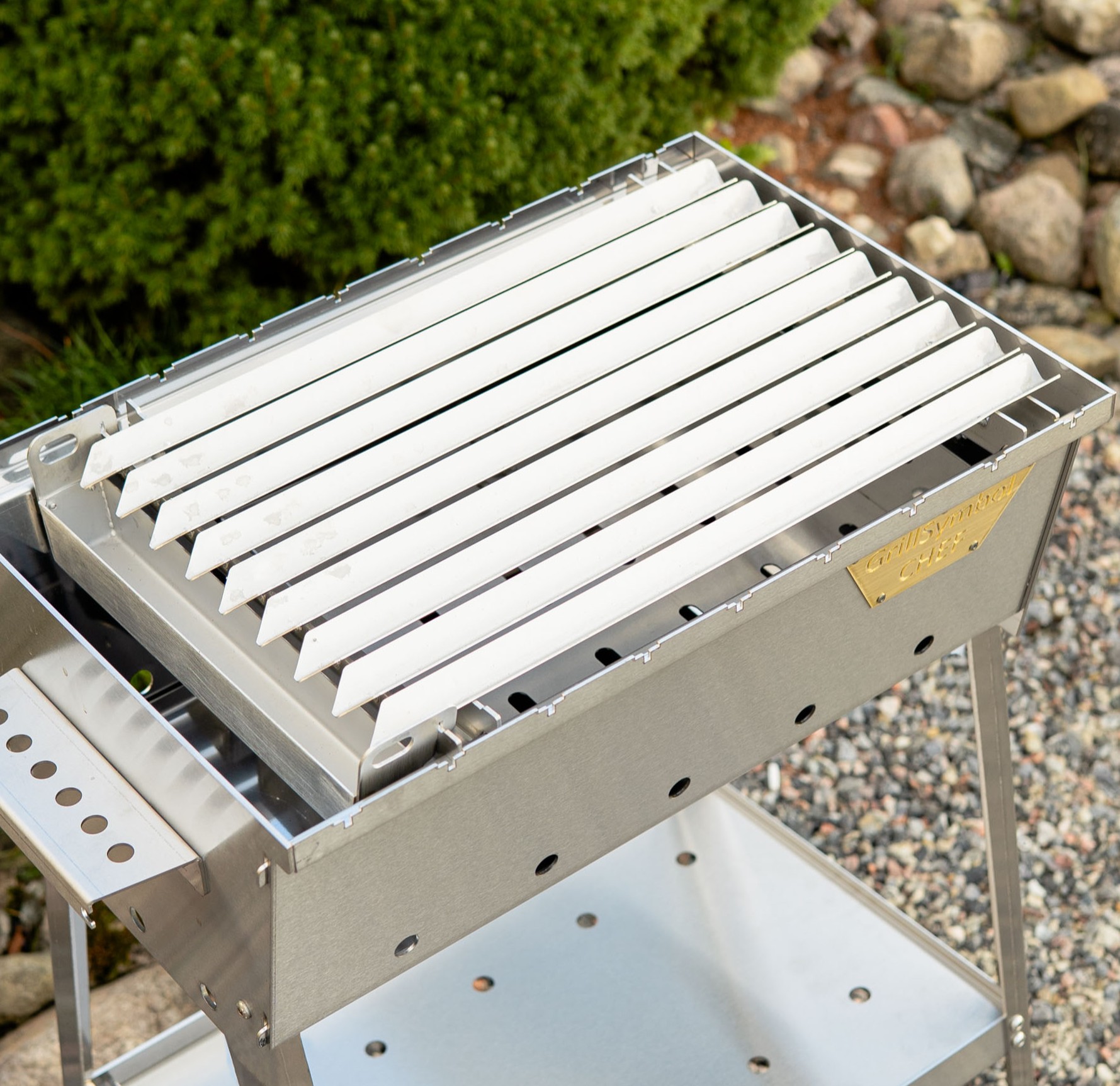 Ruostumattomasta teräksestä valmistettu argentiinalainen grilliritilä, jossa on rasvanerotin. Rasvanerotin takaa paremman kypsennystuloksen vähentämällä liekkejä kypsennyksen aikana. V-muotoiset profiilit ovat hieman kaltevia ja ohjaavat rasvankeräysalustaan. Näin saadaan tasaisempi grillaustulos ja vähemmän palanutta makua. Nauti parhaista pihveistä, ribseistä, makkaroista tai vihanneksista GrillSymbol Argentiinan grillaustelineen avulla!