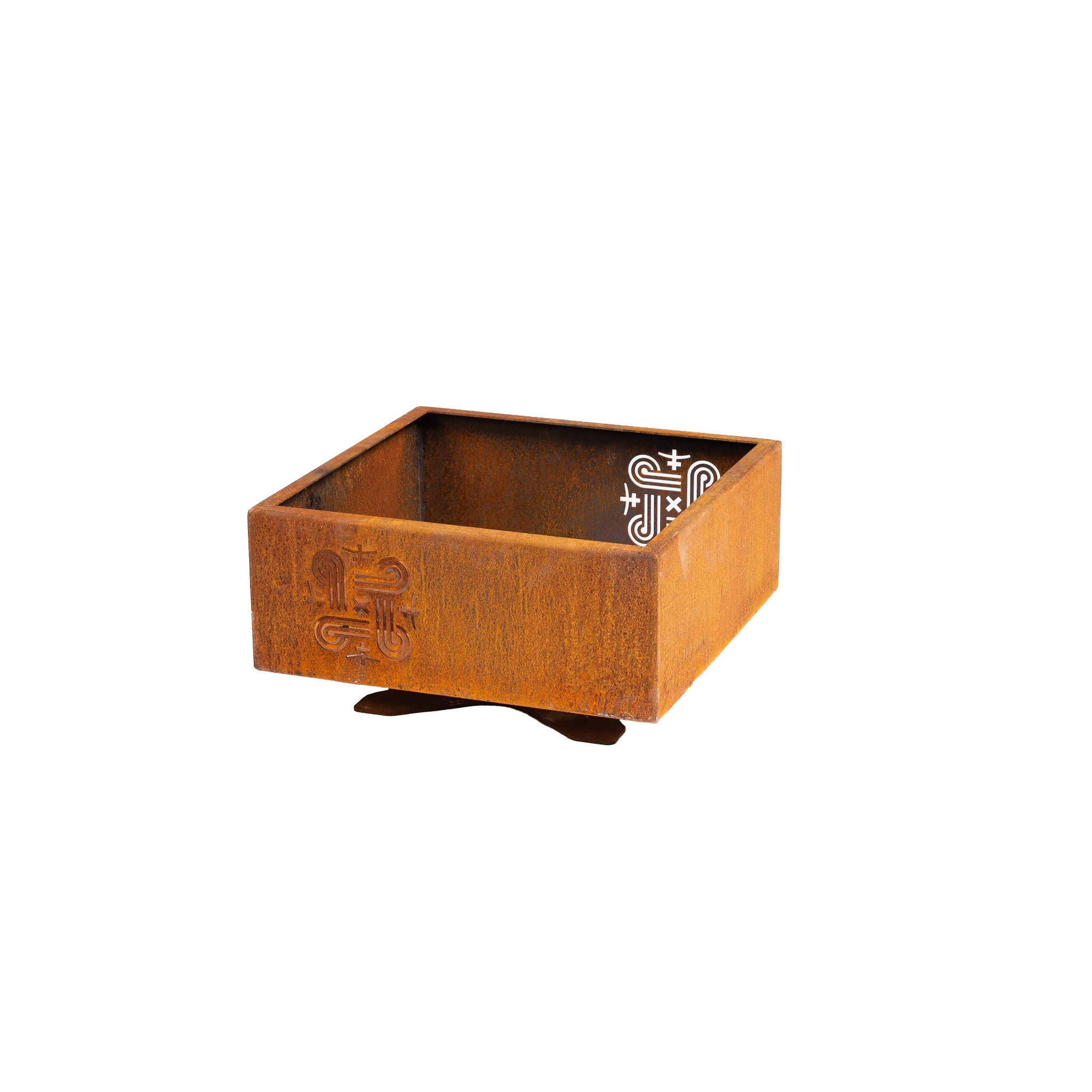 Tulisija on valmistettu Cor-Ten teräksestä, joka on melkein puhdas hiiliteräs, mutta käsitelty, jotta sen pinta saisi säänkestävän suojakerroksen.